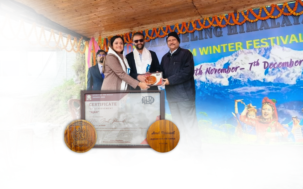 Clubside was felicitated with the prestigious AJAX Award at the DHR Awards Ceremony held at Ghum Railway Station on 30th November 2025. The recognition celebrates the organisation’s outstanding contribution and excellence within the Darjeeling Himalayan Railway tourism ecosystem.