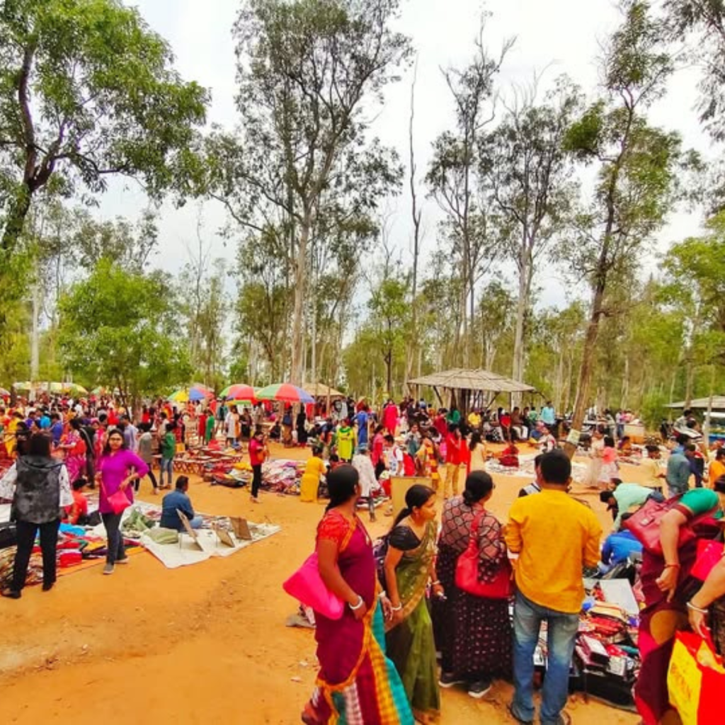Alongside the main celebrations, nearby areas such as Sonajhuri Haat and Kankalitala host independent festivities that preserve the festival’s rustic, artistic, and community-driven spirit.