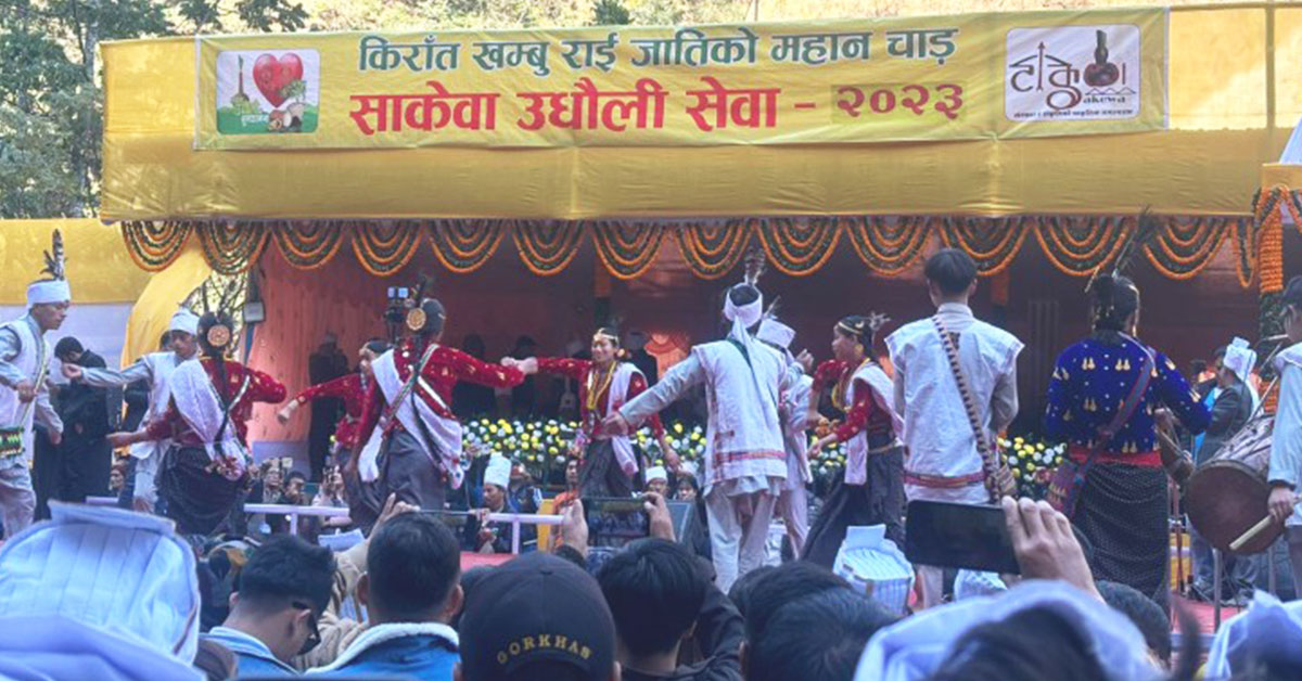Significance: In Sikkim, Sakewa holds great cultural and religious importance, especially for the Limbu and Rai communities, who are part of the larger Kirat ethnic group. The festival marks the close of the harvest season, with particular em- phasis on the celebration of Sakewa Udhauli. This event complements Udhauli, which is ob- served in the spring to pray for a successful planting season. During Udhauli, the Kirat people give thanks to nature and the deities for the abundant harvest and seek their protection as they prepare for the approaching winter.
