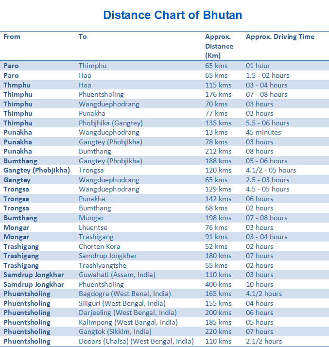 Bhutan Distance Chart